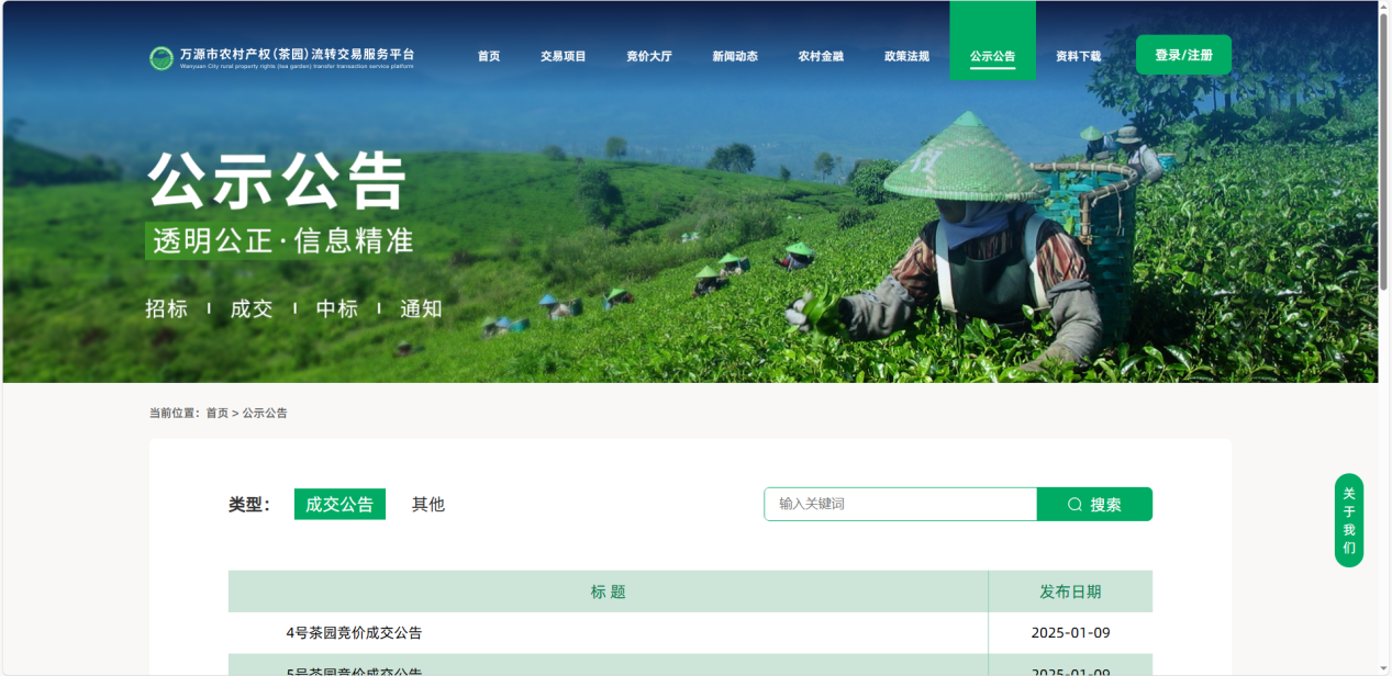以“规范交易、盘活资产、服务乡村、赋能振兴”为核心定位,立足农村产权交易全场景,构建覆盖县、乡、村三级的数字化交易服务体系。通过标准化流程设计、智能化技术支撑、多元化服务集成,实现农村产权交易的阳光化、规范化、高效化,打通农村资产流转的“最后一公里”,促进农村资源向资本转化,为乡村产业发展注入新活力。