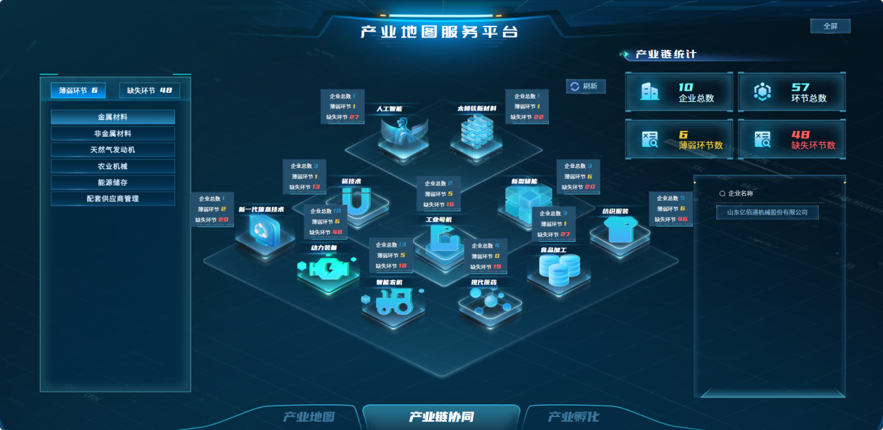 基于大数据分析构建全产业链图谱,清晰呈现产业链上中下游企业分布、核心环节、技术短板等信息。通过GIS空间分析定位产业集聚核心区与薄弱区域,为产业园区规划、产业链补链强链提供精准指引。