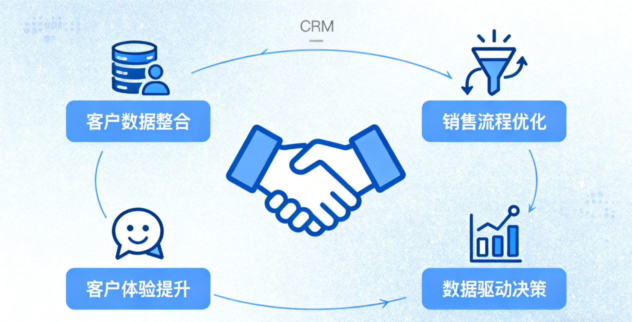 交互与触点层:为销售、客服、市场及管理层提供PC、移动端工作台,并集成官网、微信、邮箱等客户触点。