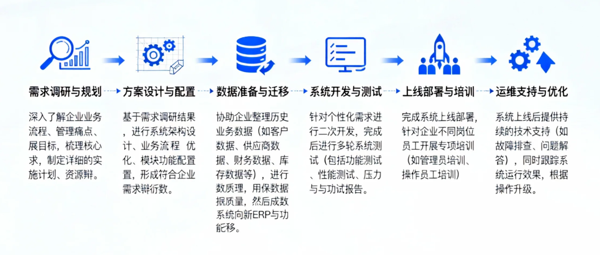 ERP解决方案围绕企业全业务流程设计,核心模块涵盖以下关键领域,可根据企业行业特性与业务需求灵活配置: